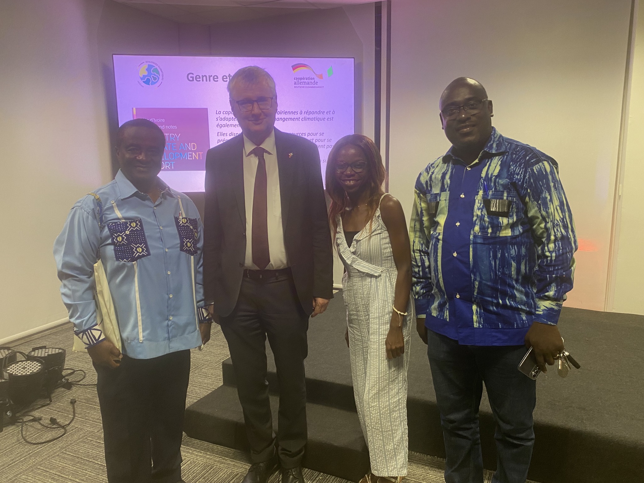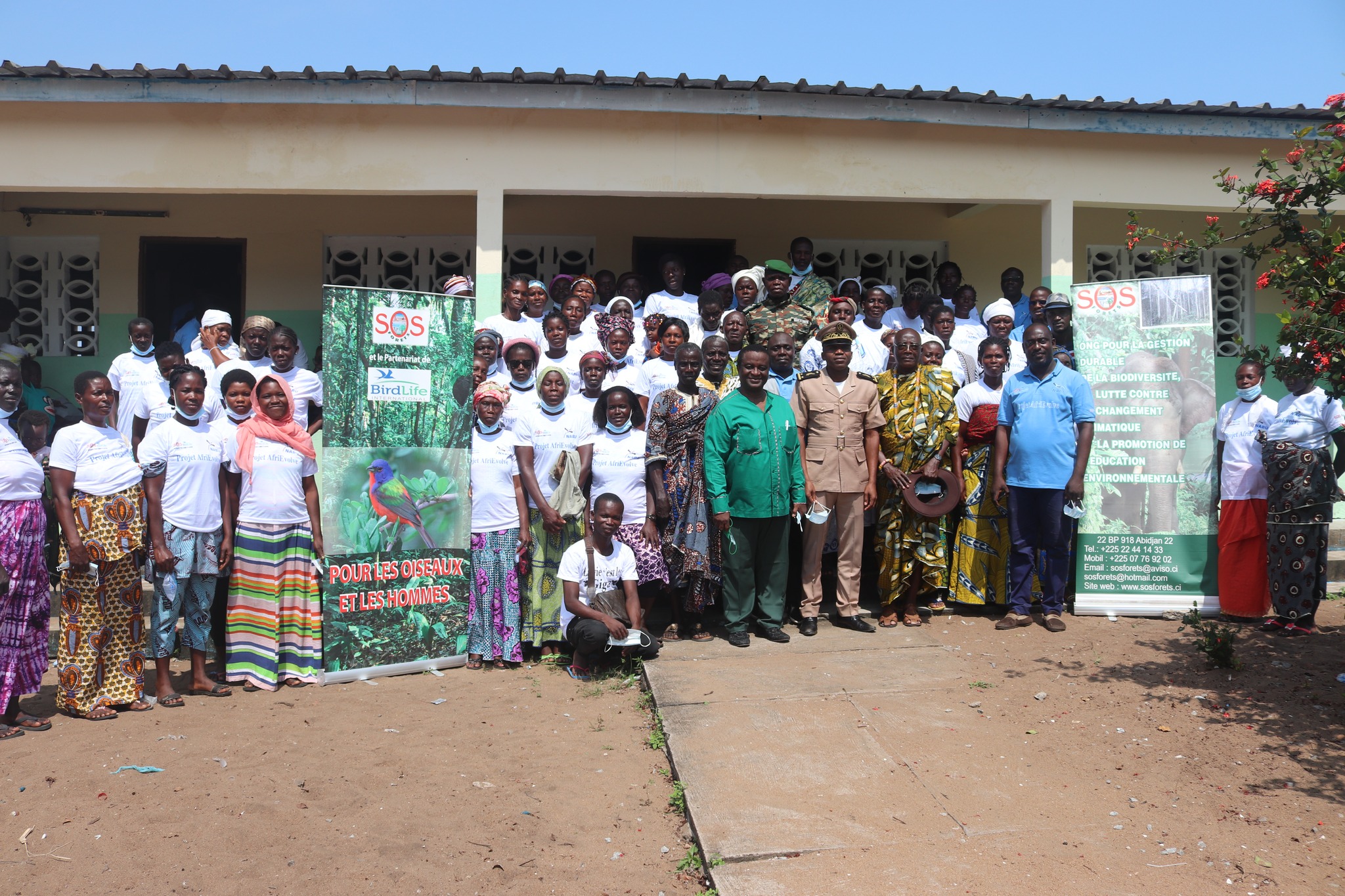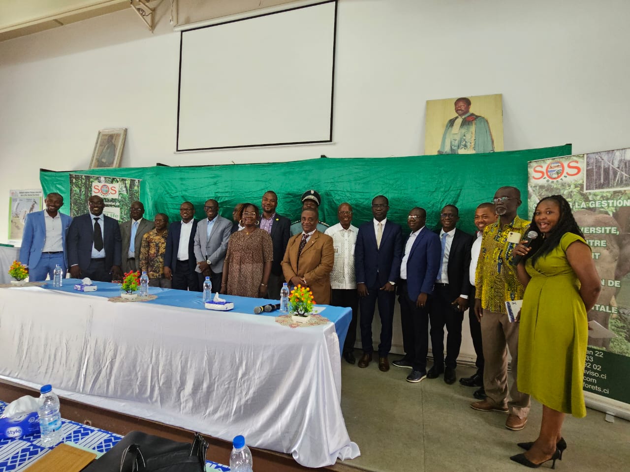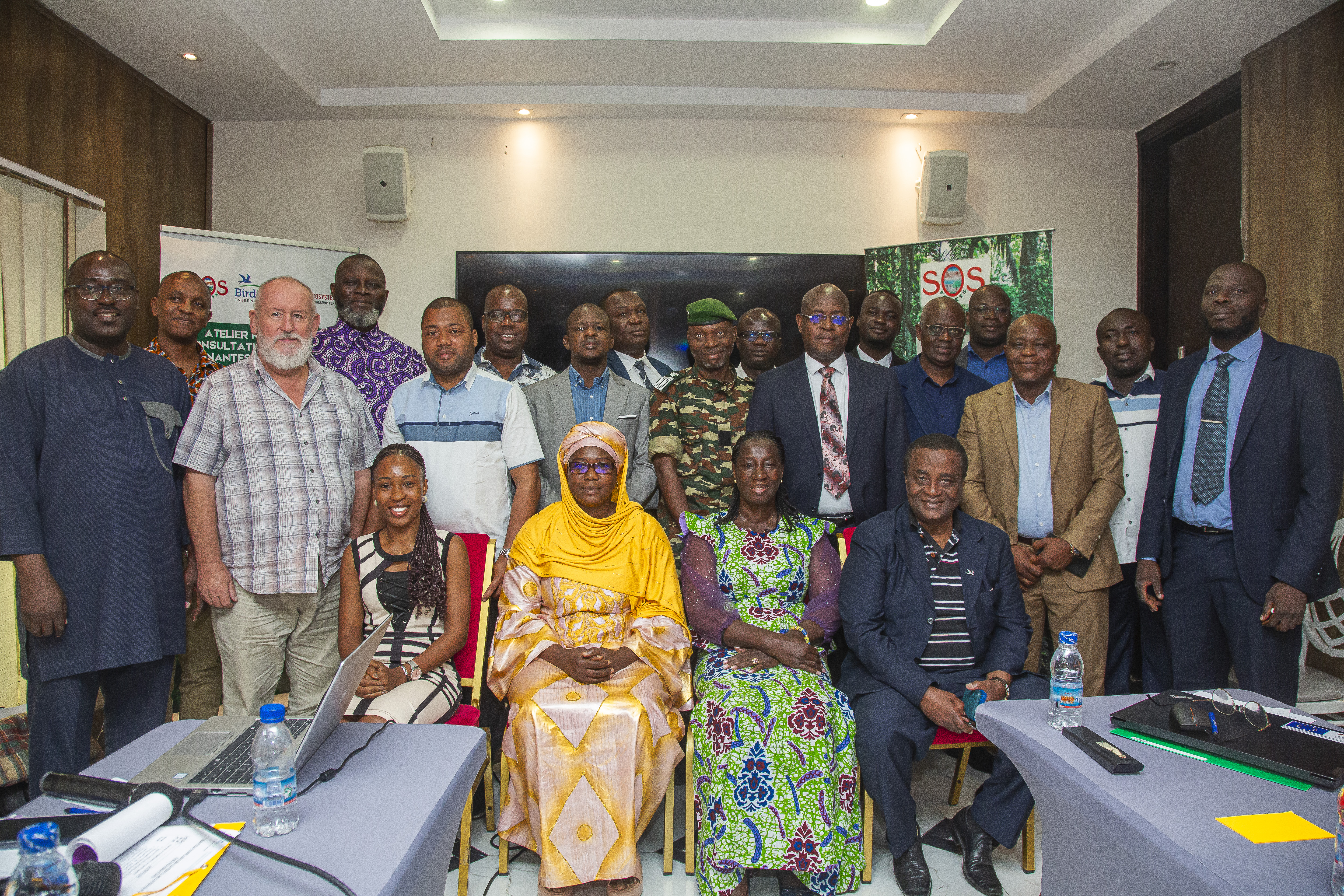 De droite à gauche - Mme Lucia Way-BriCault (Fundraising and Development Officer for West Africa - BirdLife International ) - M. Idrissa Zeba, ( Directeur Exécutif de Ong Naturama) - M. Mathieu Wadja Egnankou ( PCA de ONG SOS Forêts) - M. David Kpelle ( Directeur Exécutif de Ghana Wildlife Soci...