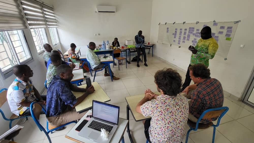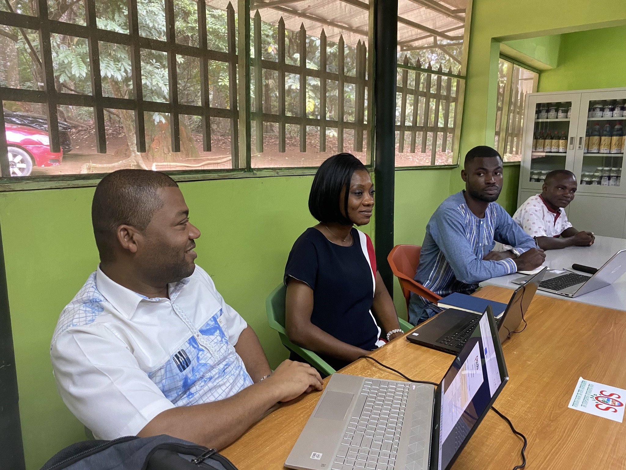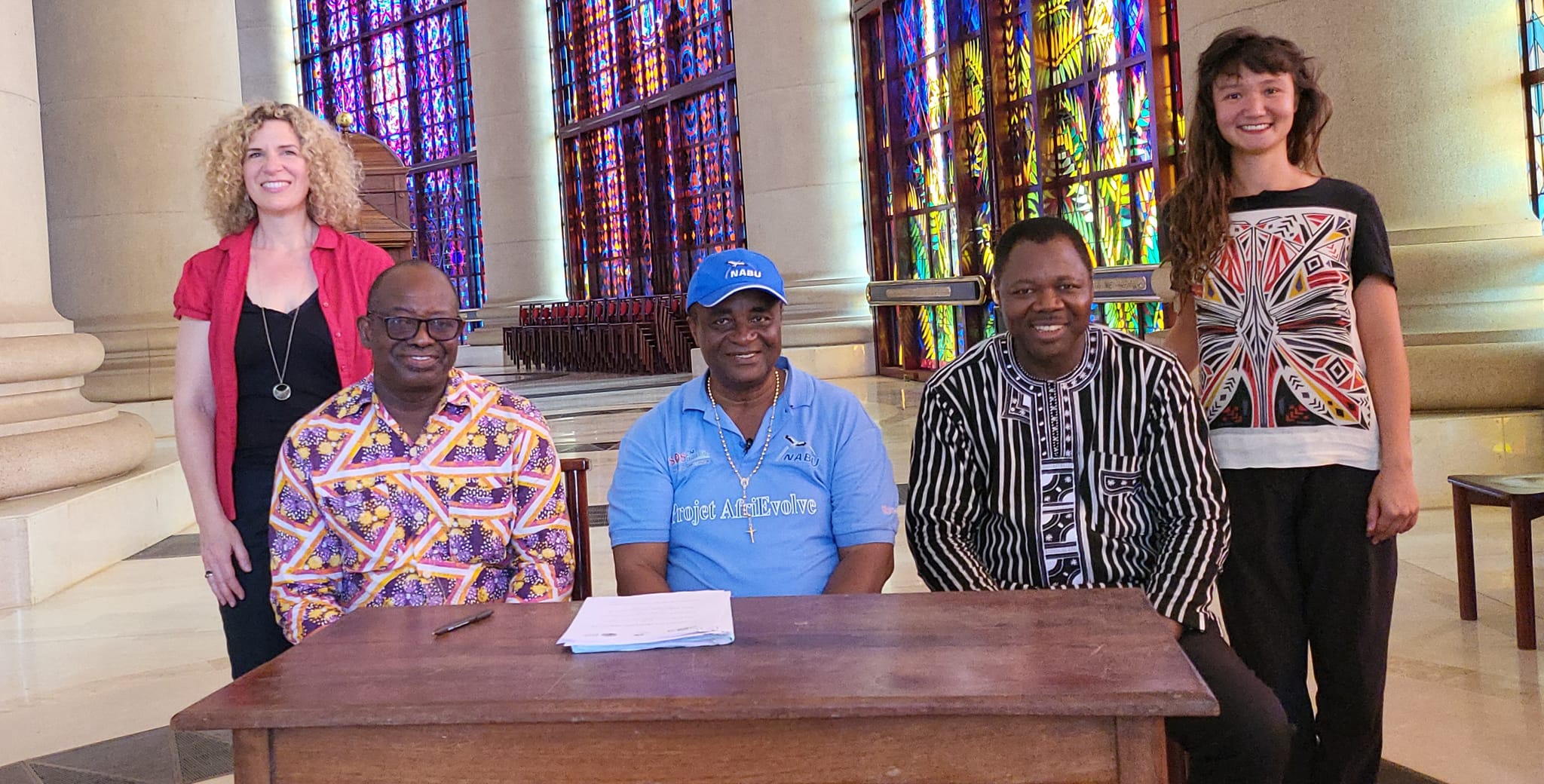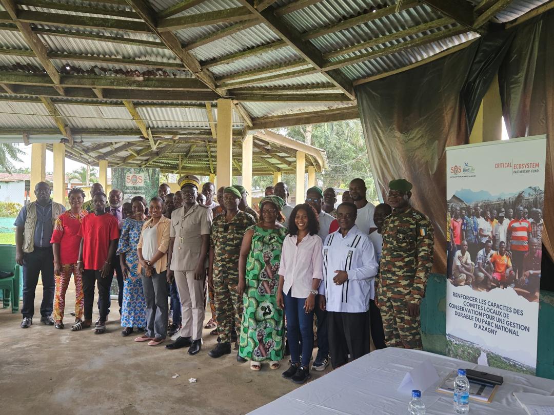 De droite à gauche - Mme Lucia Way-BriCault (Fundraising and Development Officer for West Africa - BirdLife International ) - M. Idrissa Zeba, ( Directeur Exécutif de Ong Naturama) - M. Mathieu Wadja Egnankou ( PCA de ONG SOS Forêts) - M. David Kpelle ( Directeur Exécutif de Ghana Wildlife Soci...