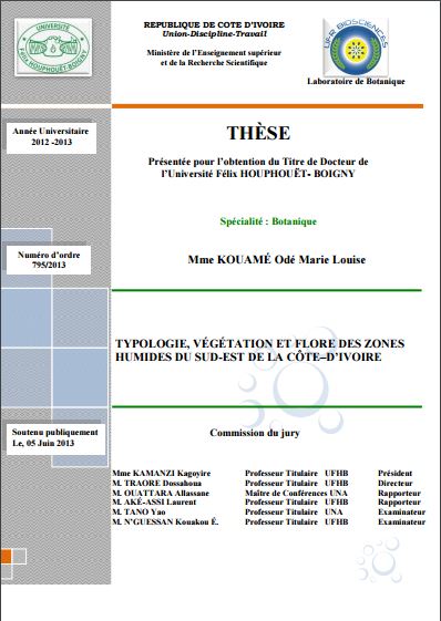 THÈME: TYPOLOGIE, VÉGÉTATION ET FLORE DES ZONES HUMIDES DU SUD-EST DE LA CÔTE–D’IVOIRE RESUME |